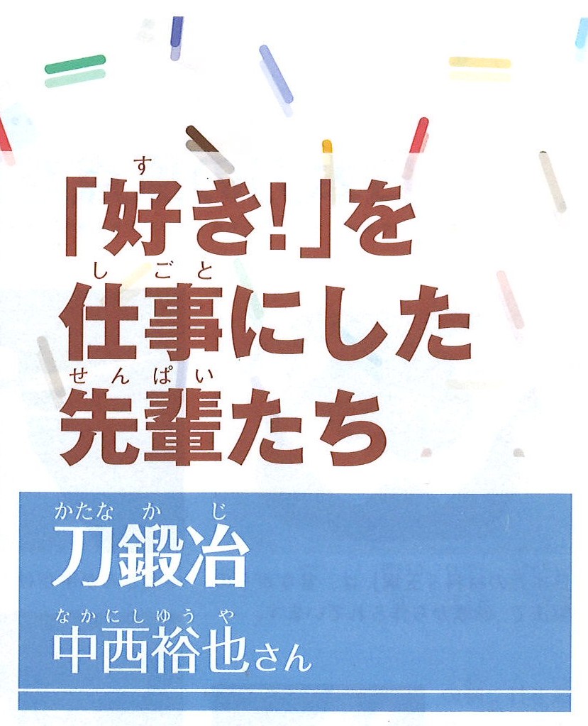 刀鍛冶は、伝統的な技術で日本刀を作る職人です。刀鍛冶のもとで5年以上の修業を積み、「美術刀剣刀匠技術保存研究会」の試験に合格することで、文化庁の認定を受けて刀匠になることができます。日本刀には1000年近い歴史があります。刀を作るだけではなく、その歴史や、刀に込められた伝統や精神を伝えていくお仕事です。