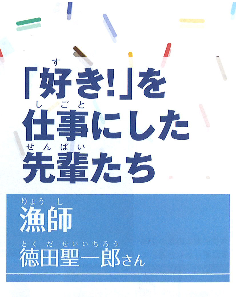 漁師とは、海や川で魚や貝などの水産物を取るお仕事です。